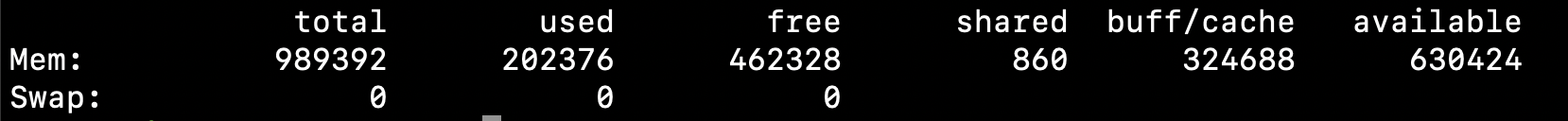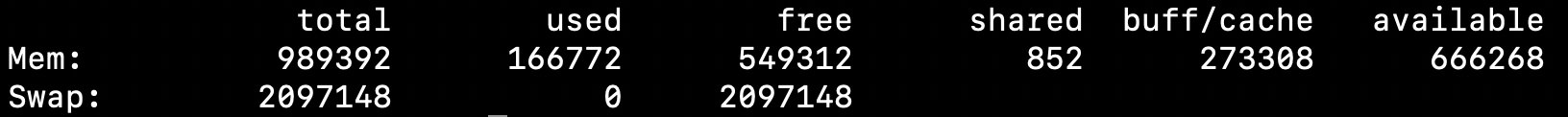 7. 마지막으로 2번의 free 명령어를 통해 Swap Memory가 적용되었는지 확인한다.