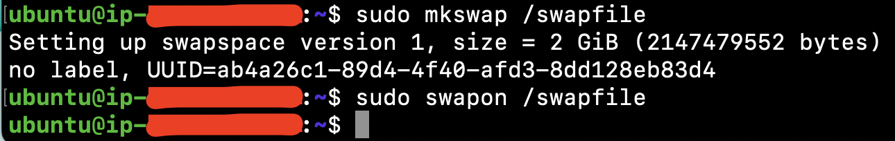 5. 생성한 swapfile로 Swap Memory를 활성화 한다.