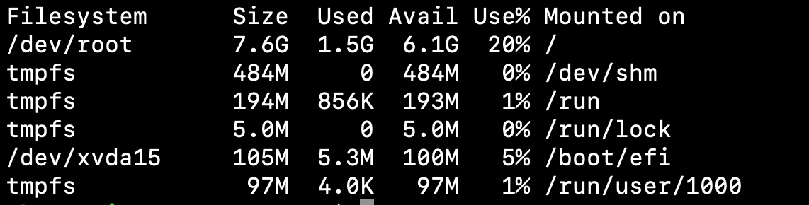1. 아래의 명령어로 용량이 얼마나 남아있는지 확인한다.