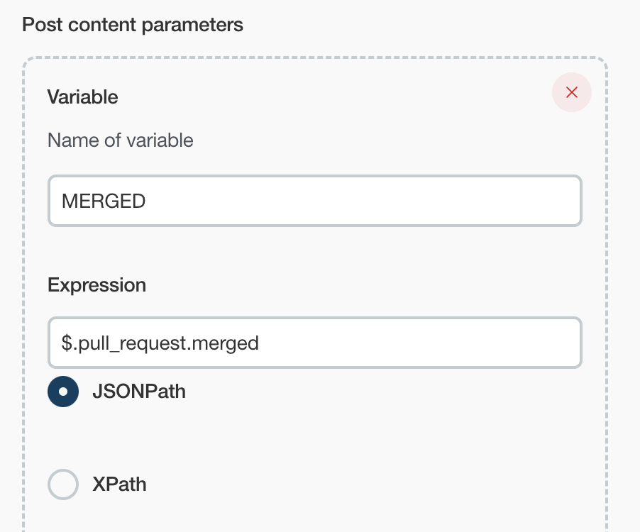 Post content parameters 추가를 누르고 변수명을 기입하고 JSONPath Expression을 기입한다.