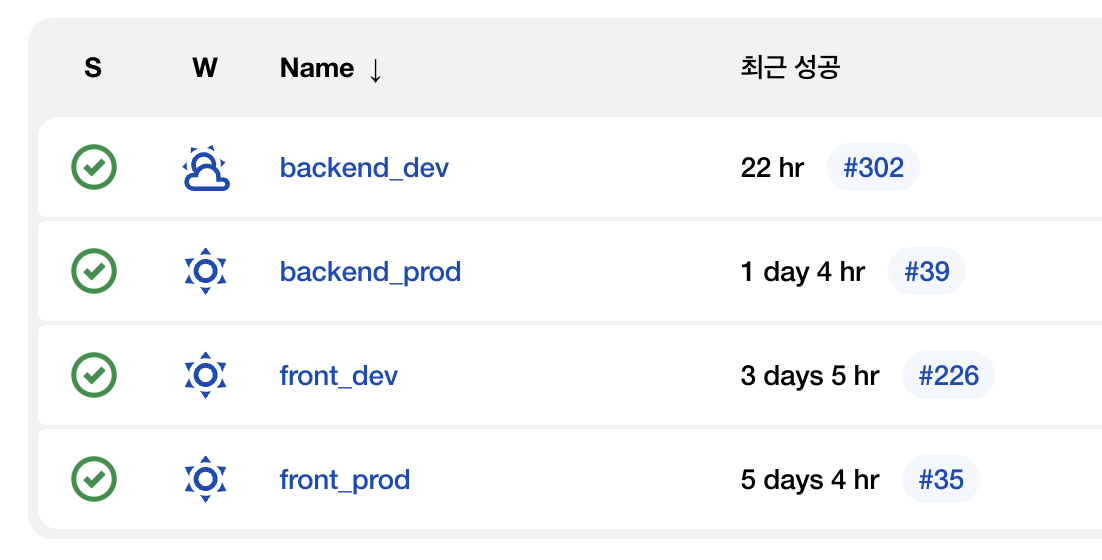 불필요한 파이프라인이 돌아가는 것을 막기 위해 라벨별로 빌드가 유발되도록 설정해보았다. PR을 머지할 때마다 프론트와 백엔드가 동시에 돌아가서 파이프라인이 돌아가는 속도가 느렸는데 비교적 빨라져서 비교적 수월한 CI/CD를 할 수 있게 되었다.